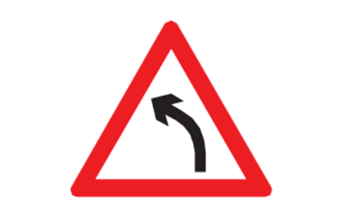 YesThis sign warns of a bend or curve in the road ahead, turning to the left, and advises slowing down.