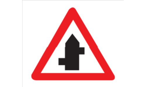 YesThis sign warns of two side roads joining the main road in a staggered fashion, one after the other.
